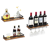 More Storage Space: This set of 3 wall-mounted wine racks not only accommodates everyday items but also features a wine glass rack and 3 S-shaped hooks at the bottom. This design offers extra storage space for a streamlined display of your wine and accessories.
